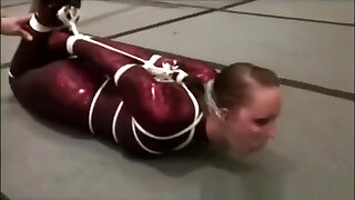 Super-cute redhead is tied up and attacked in a Domination & Submission way