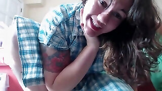 Crazy and naughty teen babe in slutty college uniform