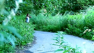 Amateur leggy and skinny bitch pulls her microskirt to piss in the forest