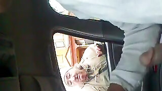 Fellow in the car frightened amateur with cock flashing