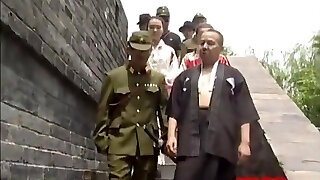 des soldats clouent à tour de rôle une nymphe japonaise ligotée