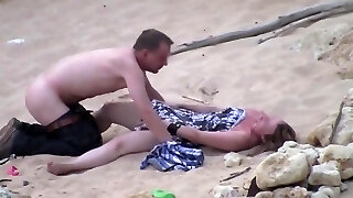 un couple amateur se fait prendre en train de baiser sur une plage pierreuse
