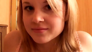 la jolie fille blonde de l'école déballe et étend ses lèvres de chattes roses
