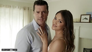 un beau-père dur et lubrique cloue sa jolie adolescent belle-fille très fort pendant que sa femme apprécie le processus