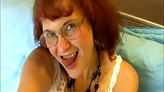mature amateur avec des lunettes aime se régaler d'une bite avec sa bouche