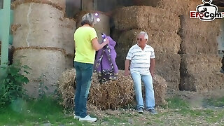 une mamie chaude suce une bite de taureau noir et se fait défoncer et son mari regarde