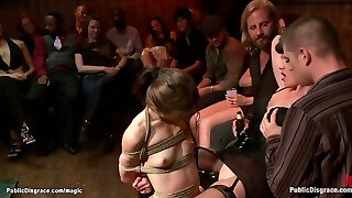 mark davis et sensi pearl dans un esclave mince et flexible baisé en public