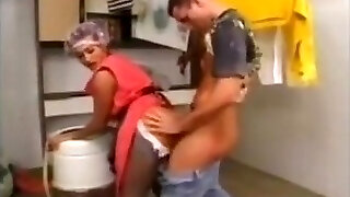 une femme de ménage insatiable se fait baiser dans la cuisine