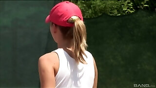 la chérie sportive helga souffle et se fait labourer sur un court de tennis