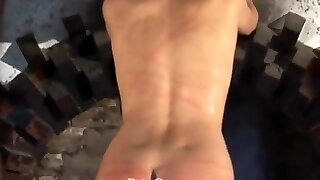 un esclave aux cheveux roux aux gros seins se fait gifler et se faire défoncer le cul