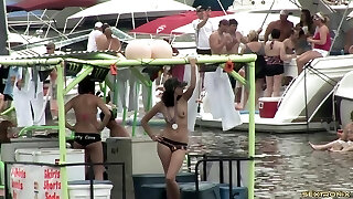 Huge-boobed sexy girls go wild at the party and win a chance to be fucked hard