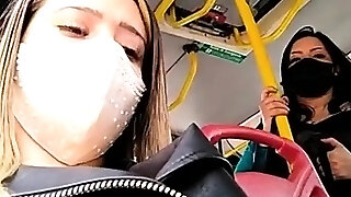 Risky Public Bus Damsel Masturbation Of Hairy Pussy Around! - Many People