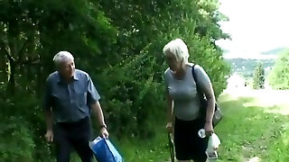тощая беззубая бабуля мастурбирует на открытом воздухе