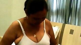 филиппинки бабушка, показывая ее прекрасный бюстгальтер писаки на веб-камеру