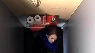 Gorgeous and young redhead stranger nubile in the public toilet apartment