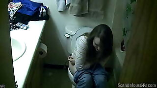 White fledgling lady in blue jeans uncovered on cam in the toilet