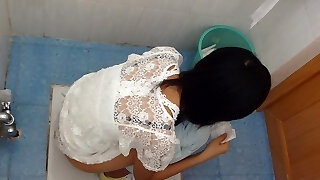 Urinating stepsister Lana Rhoades shows saucy ass and gives a good blowjob
