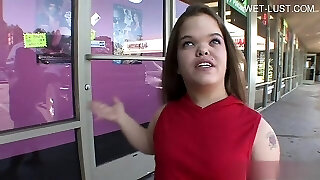 Cute teeny BBW fattie masturbates with red dildo on camera