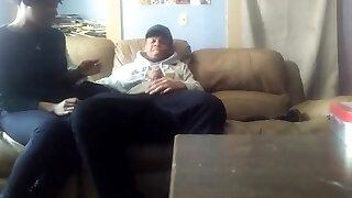 A lovely beauty masturbates and sucks her acquaintance's cock on a live broadcast.
