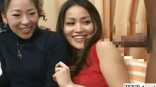 CFNM babes wanking dick until it sprays cum