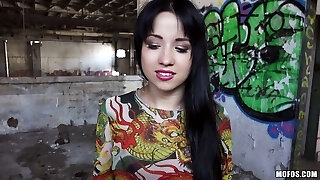 Colorful Russian girl sucks a meatpipe in public for some cash