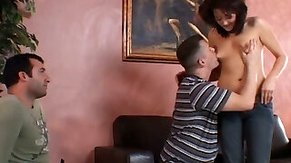 Cuckold wife gets fucked by her coworker while her hubby witnesses