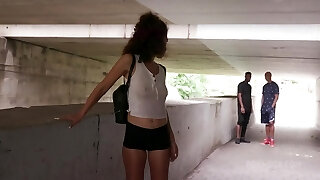 Two tattooed folks double penetrated naughty Brooklyn Gray behind dumpster