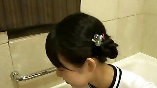 Nice Asian teen Tsubomi in swimsuit fingering pov action