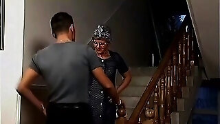 Old furry granny meets strong young guy