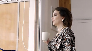 Cougar Brown-haired Fondles Her Awesome Fake Udders As He Screws Her