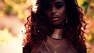 Wonderful ebony cowgirl with a pierced pussy enjoying a spicy interracial poke outdoors