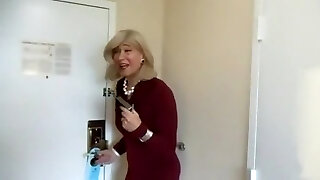 Super steaming blonde tranny in black lingerie gets fucked