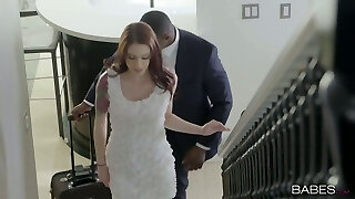 Hot redhead slut hungry for Big Black Cock sex enjoys eating her friend's huge monstercock and then asks him to wreck her pussy